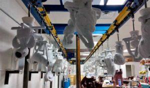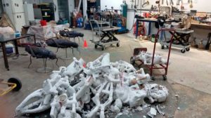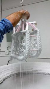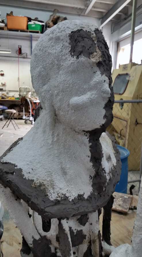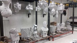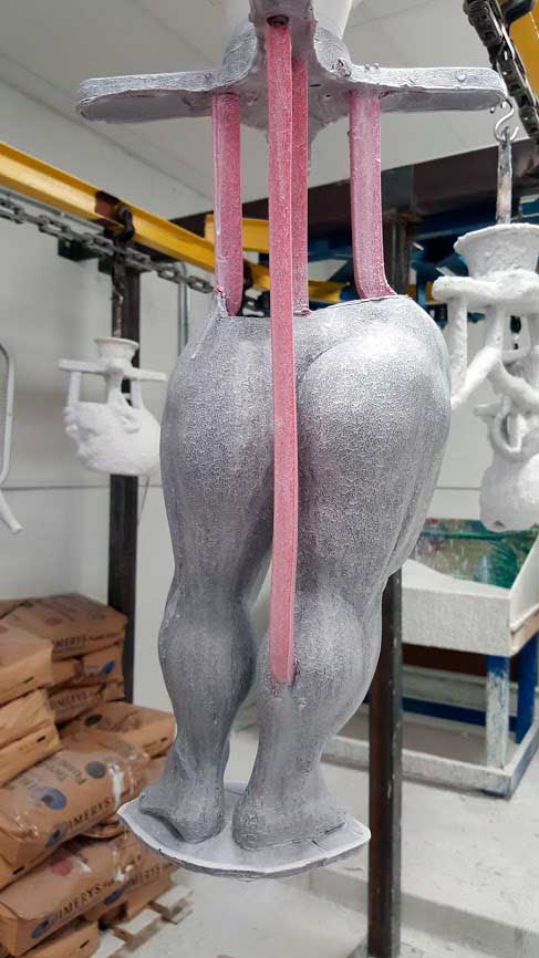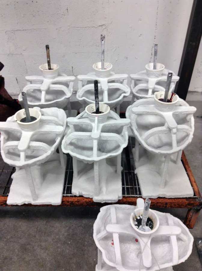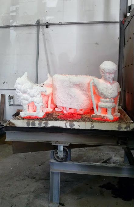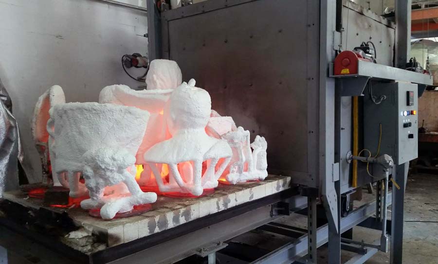 Un modelo de cera perdida se produce a partir del molde de una escultura original. Fundición a la cera perdida aparece con la cultura acadia, a mediados del II milenio AC. Es un proceso que lleva tiempo debido a su complejidad pero el resultado es gratificante, pues se convierte finalmente en una pieza original. En esta etapa del proceso permite cualquier cambio que se quiera hacer antes de que comience la fabricación, que consiste en colocar, conductos de cera que funcionaran como tragaderos por donde se verterá el metal, así como escapes de gases calientes .El patrón de cera se sumerge repetidamente en una mezcla de cerámica llamada ” suspensión “, y así repetidamente para crear una fuerte cáscara de cerámica (ceramic shell) dentro y fuera de toda la pieza, luego se montan estos moldes refractarios en nuestros hornos especiales para desparafinar (dewaxing) y la cera se derrite, dejando una cavidad vacía que mas tarde ocupara la colada de bronce .